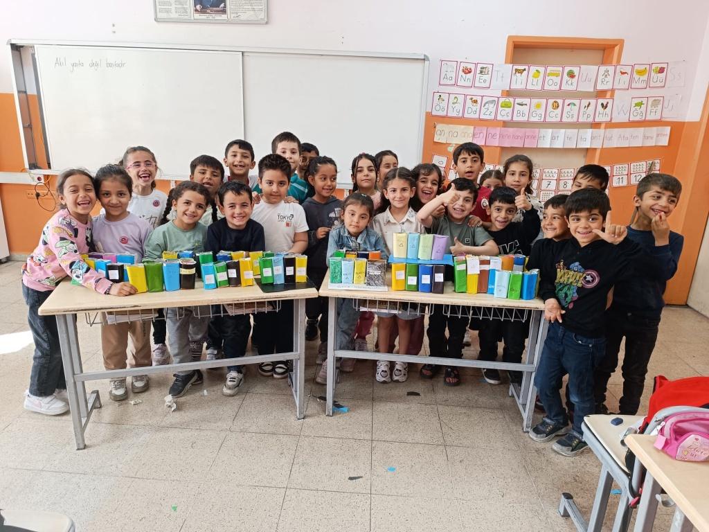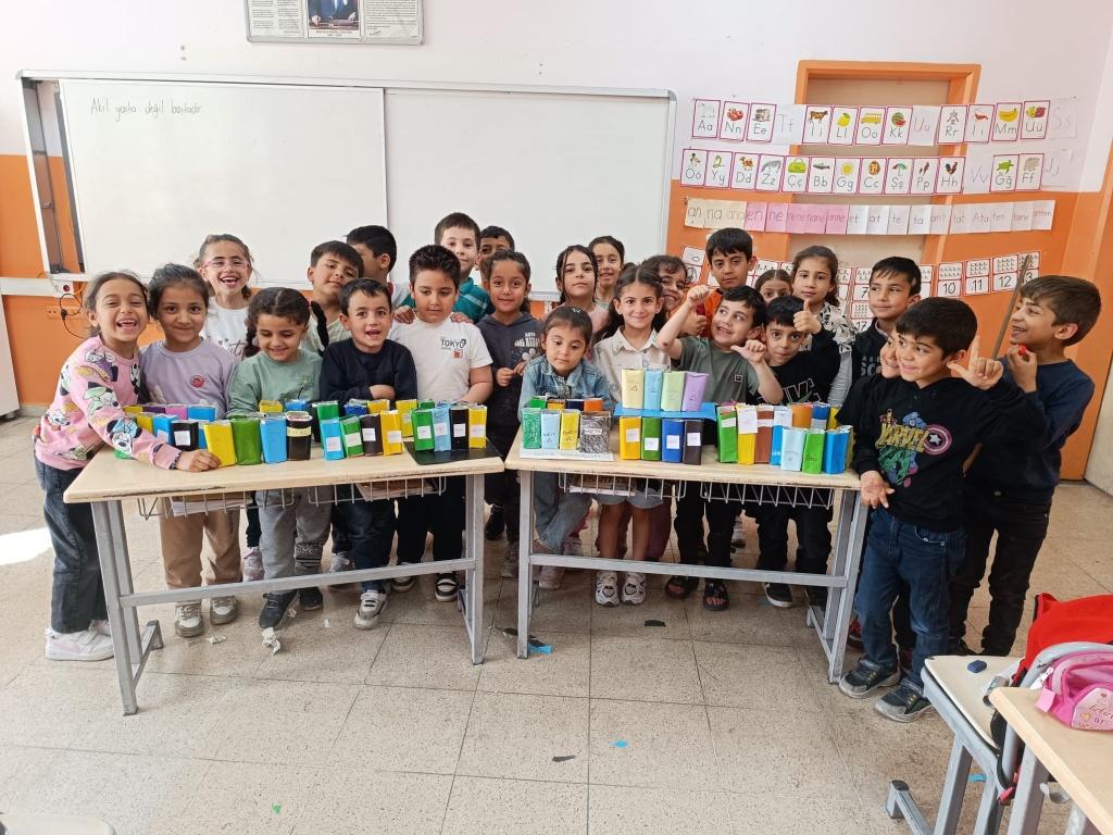 1/E sınıfı öğrencilerimiz ve öğretmenleri atık malzemelerden...