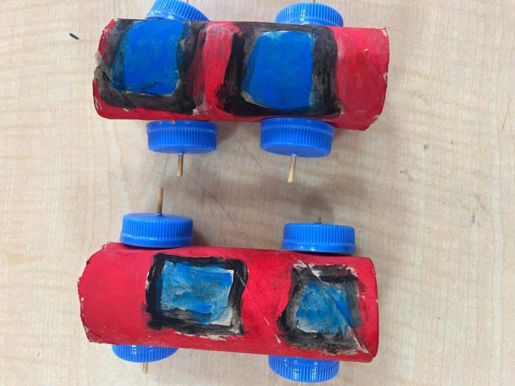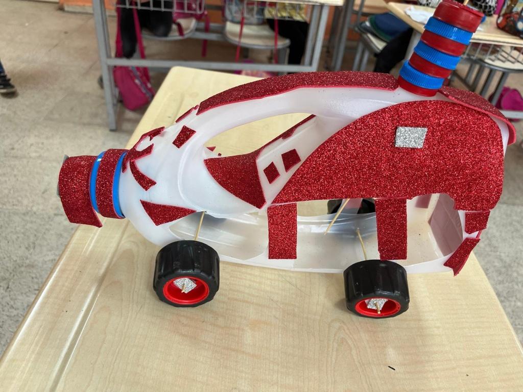 1/E sınıfı öğrencilerimiz ve öğretmenleri atık malzemelerden araba ürettiler :)