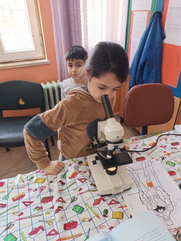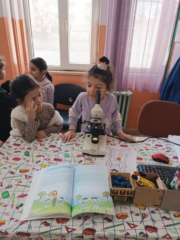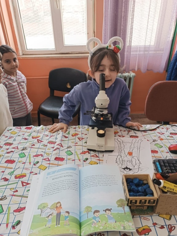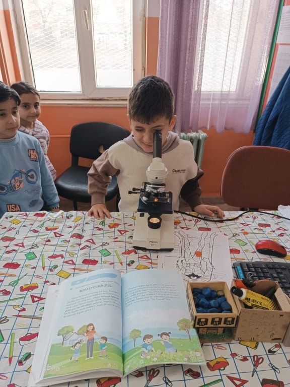 1.sınıf öğrencilerimiz mikroskopla maddeleri incelediler.